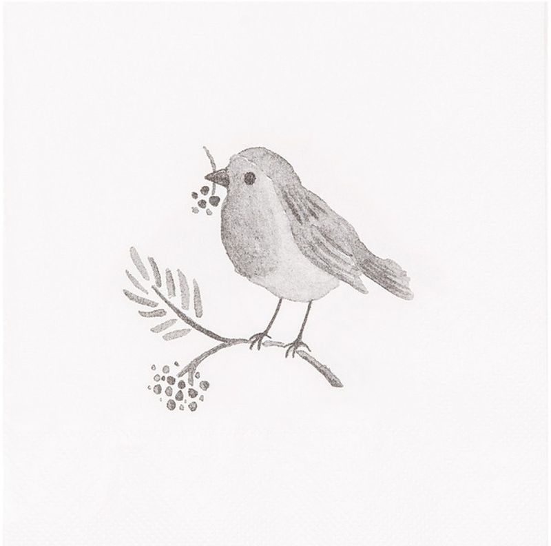 Białe serwetki papierowe z pięknym wizerunkiem ptaka. Piękne i nastrojowe na Twoim stole. Serwetki są również świetne do pakowania małych prezentów.