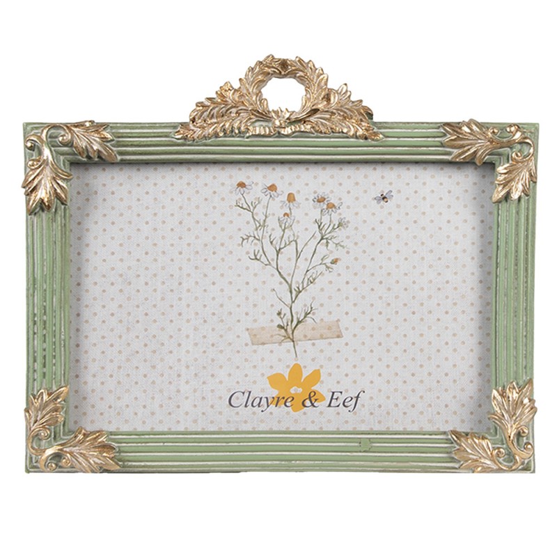 Dekoracyjna złoto-zielona ramka na zdjęcia z motywem kwiatowym. Ta ramka może stać pionowo lub być zawieszona. Jest piękną ozdobą każdego wnętrza.