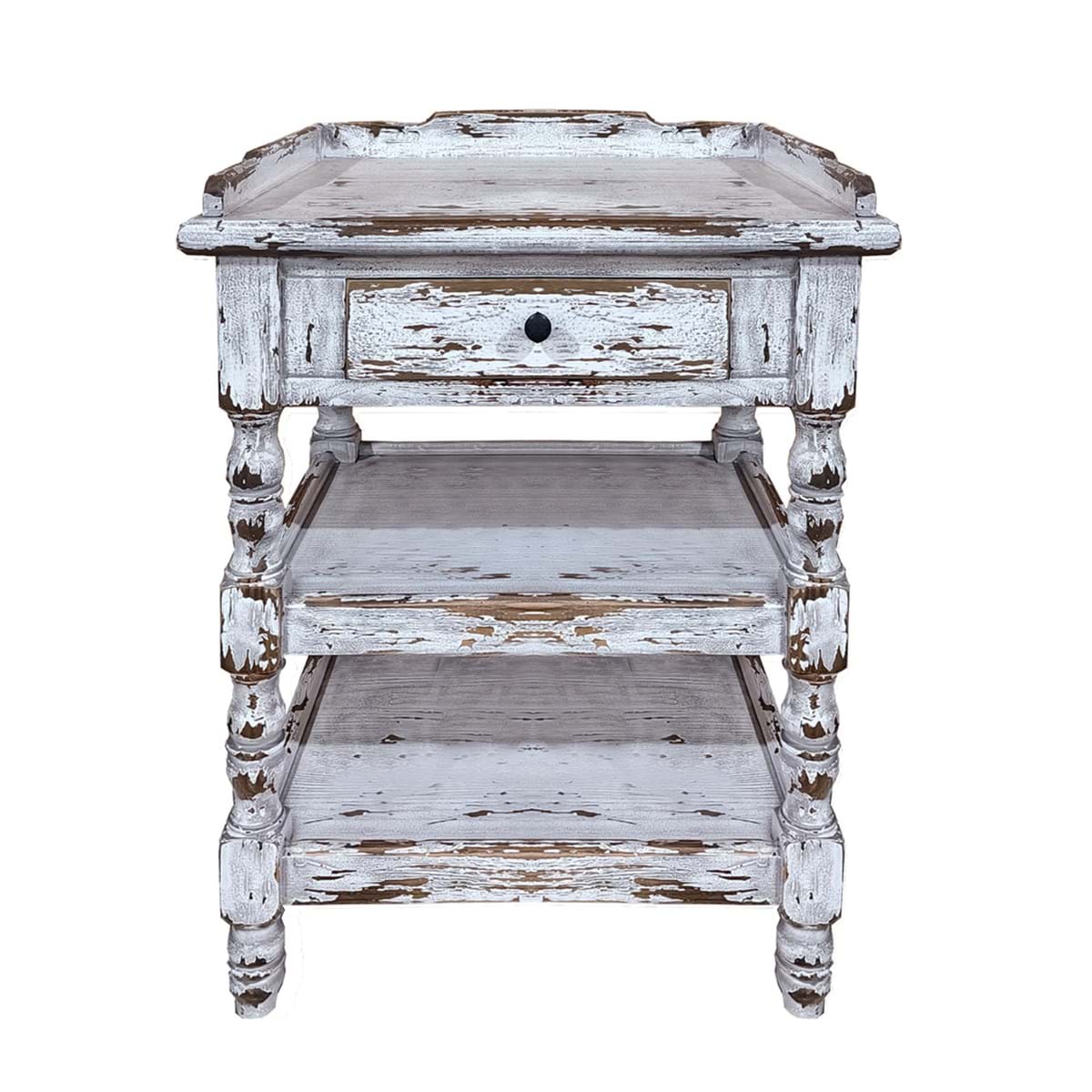 Ponadczasowa komoda z historią w klimacie shabby chic. Mebel został postarzony techniką tworzenia postarzanych mebli i dekoracji poprzez malowanie kilkoma warstwami farby. Następnie celowe ich przecieranie, by wydobyć spodnie warstwy i nadać przedmiotom wygląd zużytych, ale wciąż eleganckich. Posiada jedną praktyczną szufladę i dwie półki. Wyjątkowy oraz funkcjonalny mebel do wnętrz inspirowanych stylistyką francuską. Solidne wykonanie.