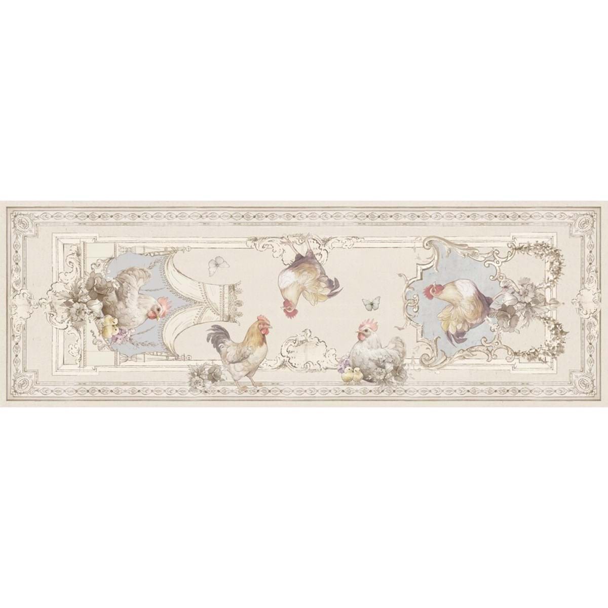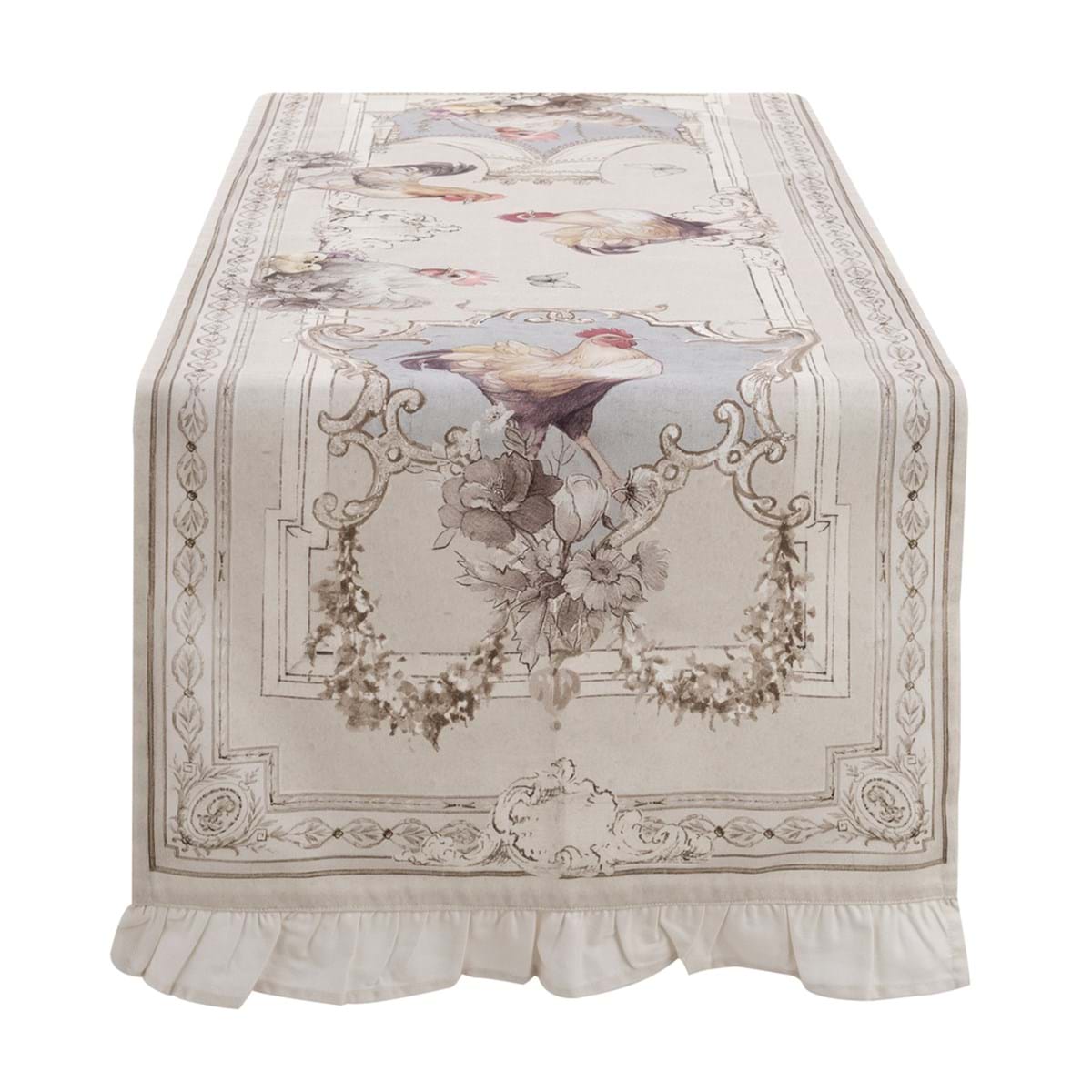 Romantyczny i zarazem elegancki bieżnik z motywem koguta. Praktyczna dekoracja do wnętrz utrzymanych w stylu francuskim. Twój stół nabierze teraz królewskiego wyglądu.