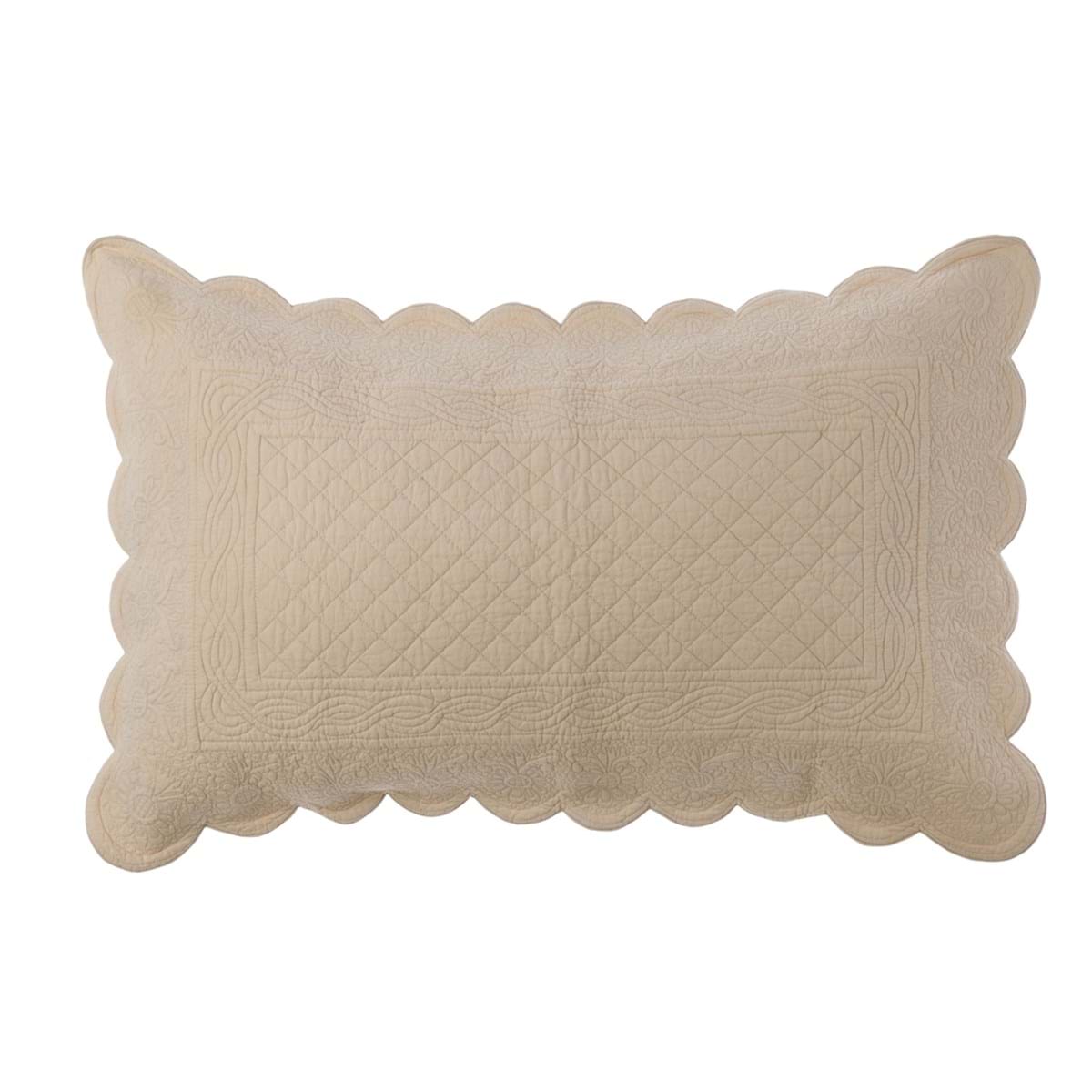 Romantyczna, prostokątna poduszka wykonana techniką boutis przez Blanc MariClo. Wykonana z bawełny ozdobiona subtelnym motywem. Praktyczna dekoracja do wnętrz utrzymanych w stylu francuskim. Sprzedawana bez wypełnienia. Kolor poszewki jest w naturalnej barwie.