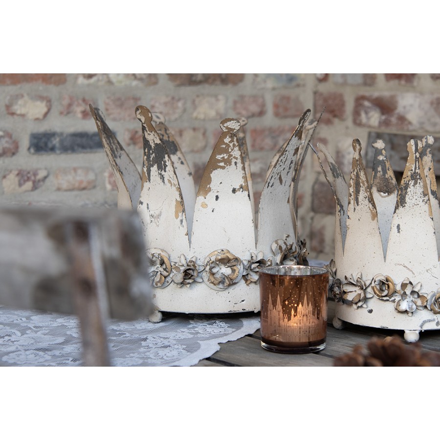 Ładne, dekoracyjne tace, w stylu rustykalnym o romantycznym wyglądzie. Posiadają motyw korony, dzięki czemu możesz, z powodzeniem wykorzystać je jako podstawę świeczników umieszczając na nich wiele świec. Idealna dekoracja do wnętrza w klimacie francuskim. Tace wygląda jak ze starego zamku. Dodatkowo ozdobione zostały kwiatowym motywem.