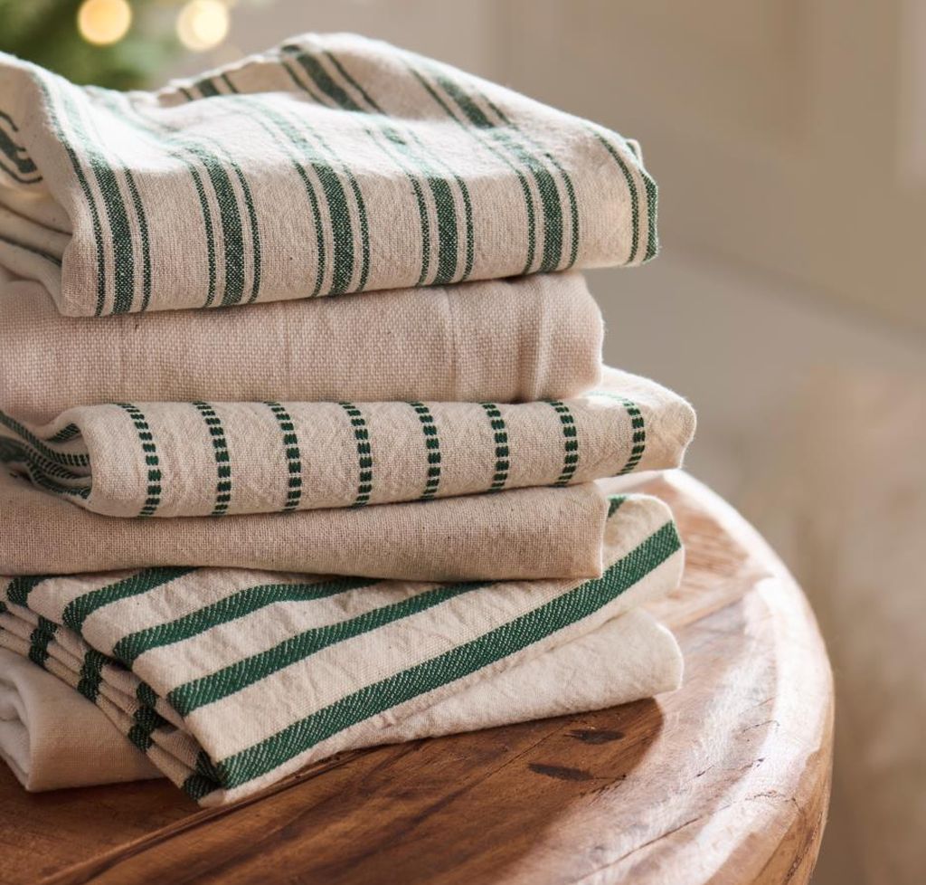 Ręcznik kuchenny wykonany w 100% z bawełny, o doskonałej chłonności i trwałości – praktyczny i dekoracyjny wybór do Twojej kuchni. Będzie również wspaniałym prezentem dla gospodyni. Ponadczasowy, rustykalny urok do Twojej kuchni. Klasyczne wzornictwo kryje w sobie ciche piękno, a ściereczka kuchenna Franz marki Ib Laursen doskonale je oddaje. Naturalna bawełna i ciemnozielone paski wnoszą nutę ponadczasowego, rustykalnego ciepła do serca Twojego domu.