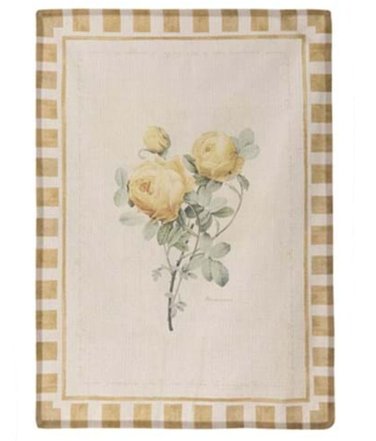 Klimatyczny ręcznik kuchenny ozdobiony motywem żółtej róży. Wprowadź odrobinę roślinnej świeżości do swojej kuchni dzięki naszej bawełnianej ściereczce kuchennej z farmerskim motywem. Wykonana z wysokiej jakości bawełny, jest superchłonna i trwała, idealna do wycierania naczyń i sztućców. Żywe, roślinne nadruki dodają odrobinę koloru i radości, sprawiając, że codzienne obowiązki stają się przyjemniejsze. Można prać w pralce, co ułatwia i przyspiesza czyszczenie.