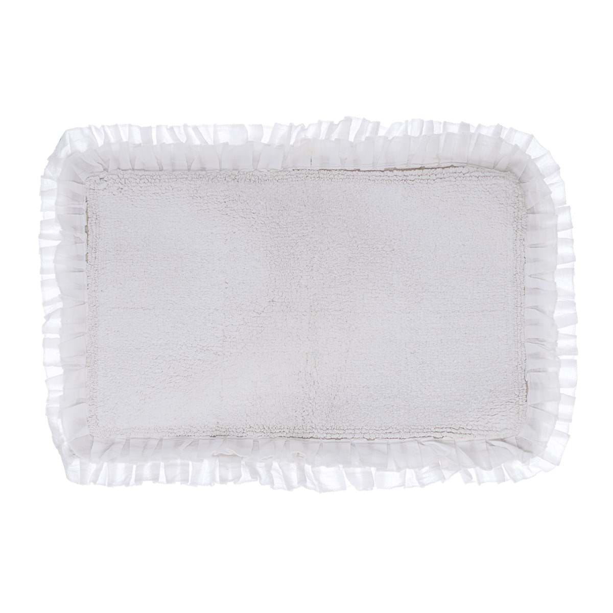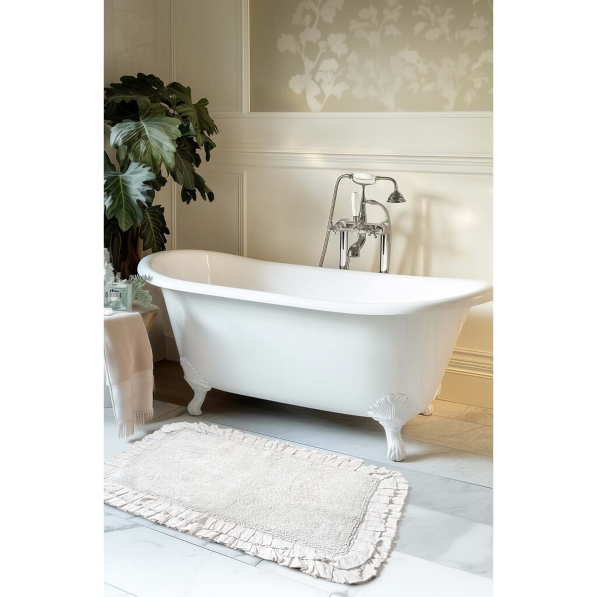 Wykonany w 100% z bawełny dywan jest miękki, chłonny i trwały. Falbana na krawędzi o delikatnym i romantycznym wzorze dodaje odrobinę elegancji i wyrafinowania. Biały kolor, ponadczasowa klasyka, idealnie komponuje się z każdym stylem łazienki. Praktyczna dekoracja do stylowej łazienki.