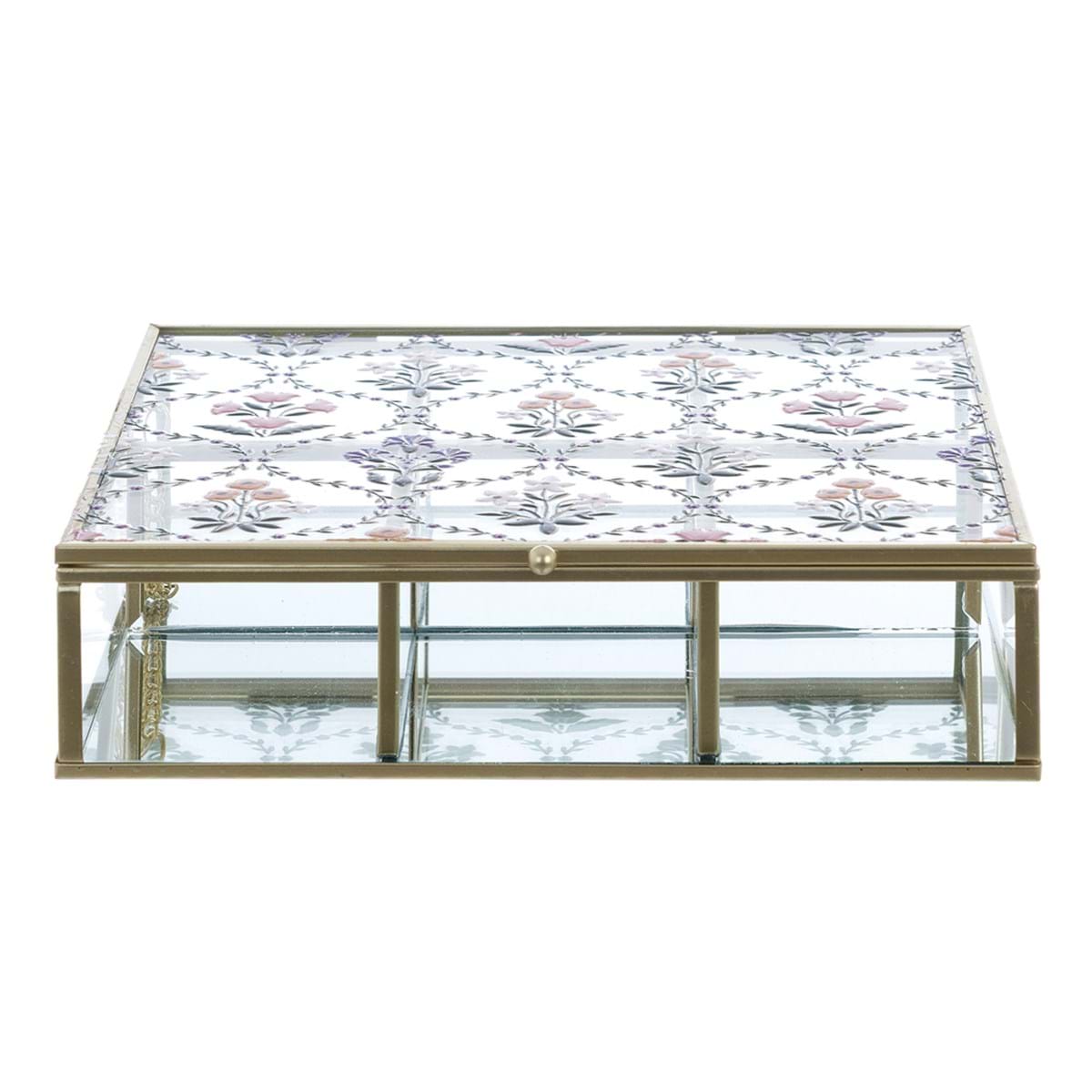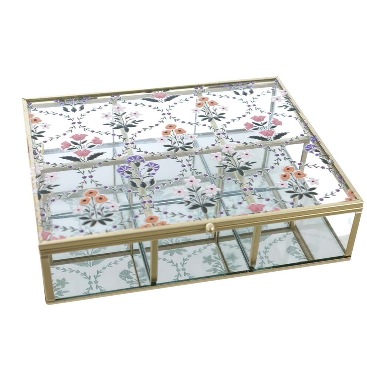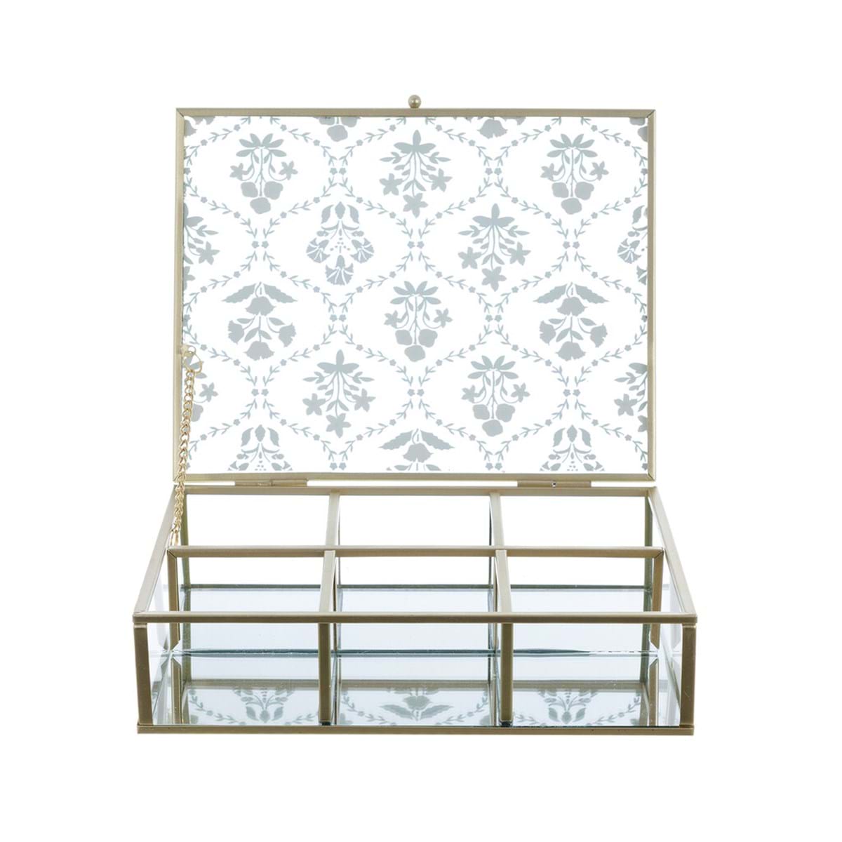 Romantyczna szkatułka na biżuterię w pałacowym klimacie. Zdobiona ozdobnym motywem kwiatów. Idealna dla miłośniczek praktycznych dekoracji w stylu minionej epoki.