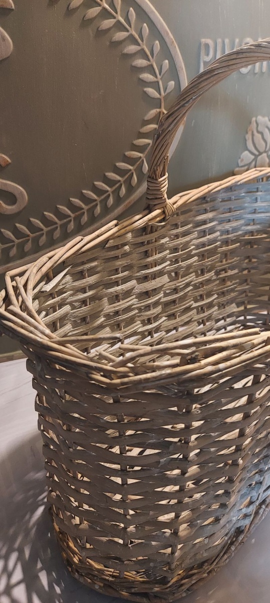 Praktyczny kosz z uchwytem do wykorzystania na zakupy bądź jako klimatyczna dekoracja holu lub ogrodu.