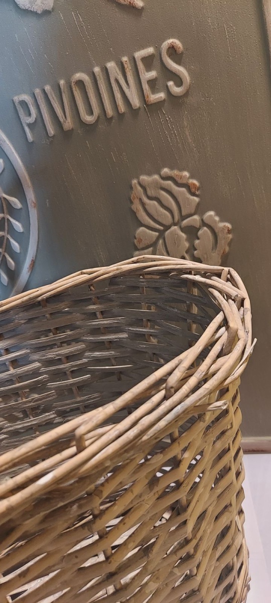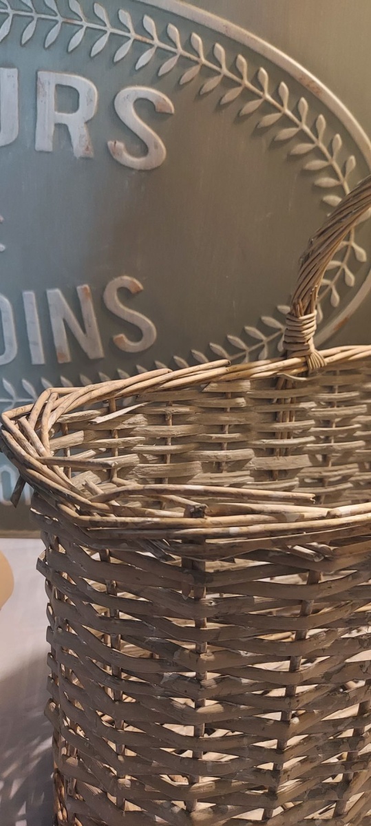 Uwaga: Obręcz kosza w górnej części po prawej i lewej stronie posiada defekt (delikatnie połamany rattan) - zdjęcia poglądowe na stronie.