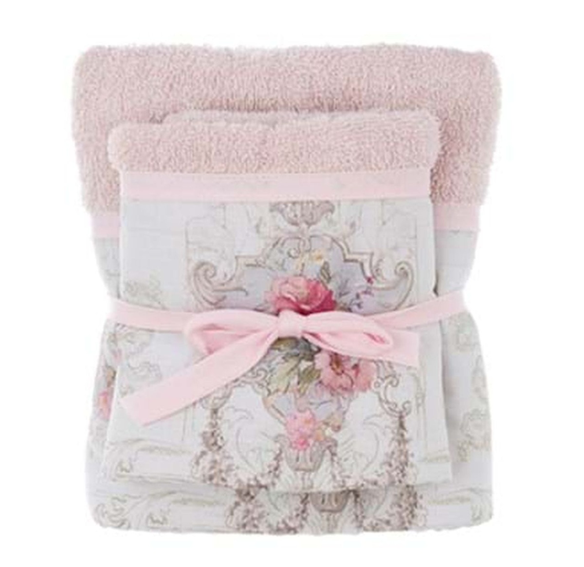 Romantyczny zestaw ręczników ozdobiony delikatnym motywem róż. Elegancki i zarazem praktyczny dodatek do łazienki w stylu skandynawskim i shabby chic. Kwiatowy wzór jest subtelny i ponadczasowy, nadając łazience przyjemną, harmonijną atmosferę. Gęsty i ścisły splot włókien. Świetnie wchłania wodę. Przyjemny w dotyku.