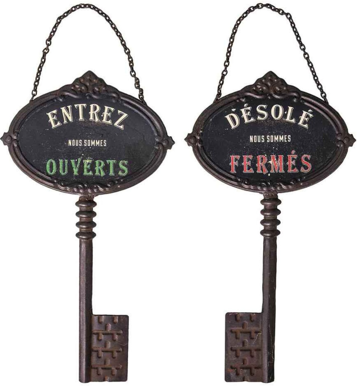 Szyld w kształcie klucza (otwarte/zamknięte) Szyld w kształcie klucza Antic Line z napisem „otwarte/zamknięte” idealnie nadaje się do dodania odrobiny uroku w stylu vintage do drzwi wejściowych lub sklepu. Ten element dekoracyjny jest zarówno funkcjonalny, jak i estetyczny. Z łatwością odmienisz wygląd swojej firmy lub przestrzeni osobistej dzięki praktycznemu wzornictwu i stylowi retro. Idealny dla osób ceniących sobie zarówno funkcjonalność, jak i elegancję w aranżacji wnętrz.