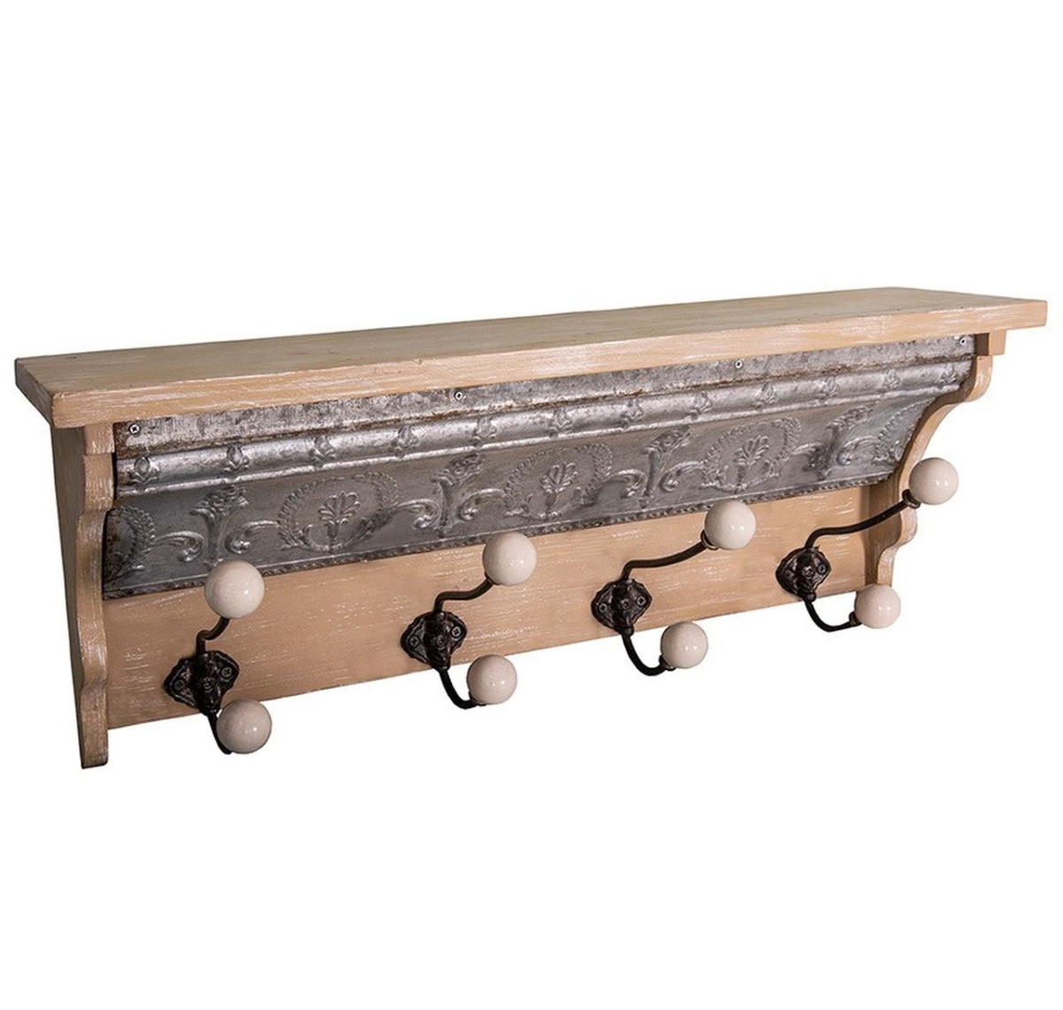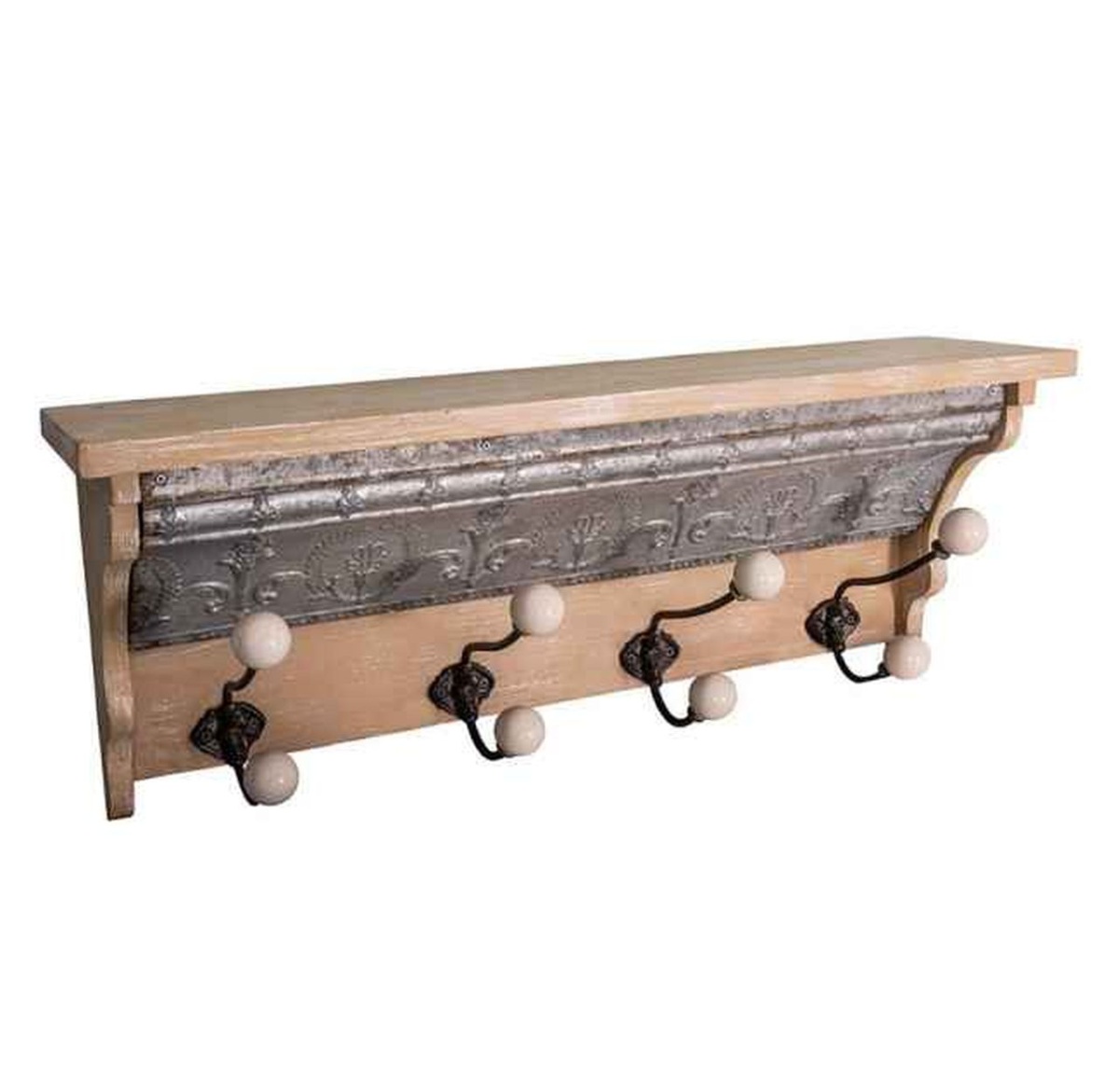 Wieszak ścienny z półką oraz 4 haczykami: Wieszak na ubrania marki Antic Line pozwoli Ci elegancko i łatwo przechowywać ubrania outdoorowe. Czasami można go wyposażyć w półkę lub schowki. Przyda się do przechowywania ubrań przy wejściu do domu. Idealna dekoracja ścienna do wnętrz dla wielbicieli przedmiotów w klimacie vintage.