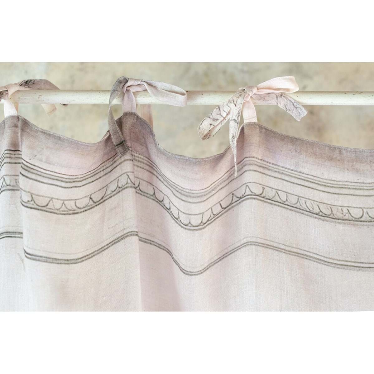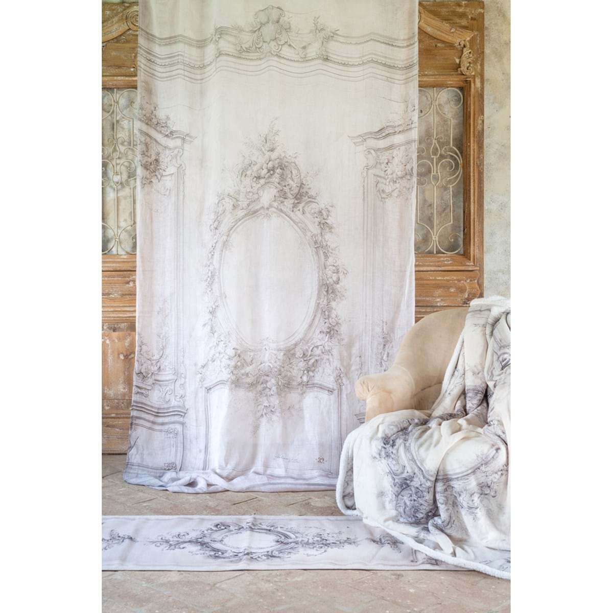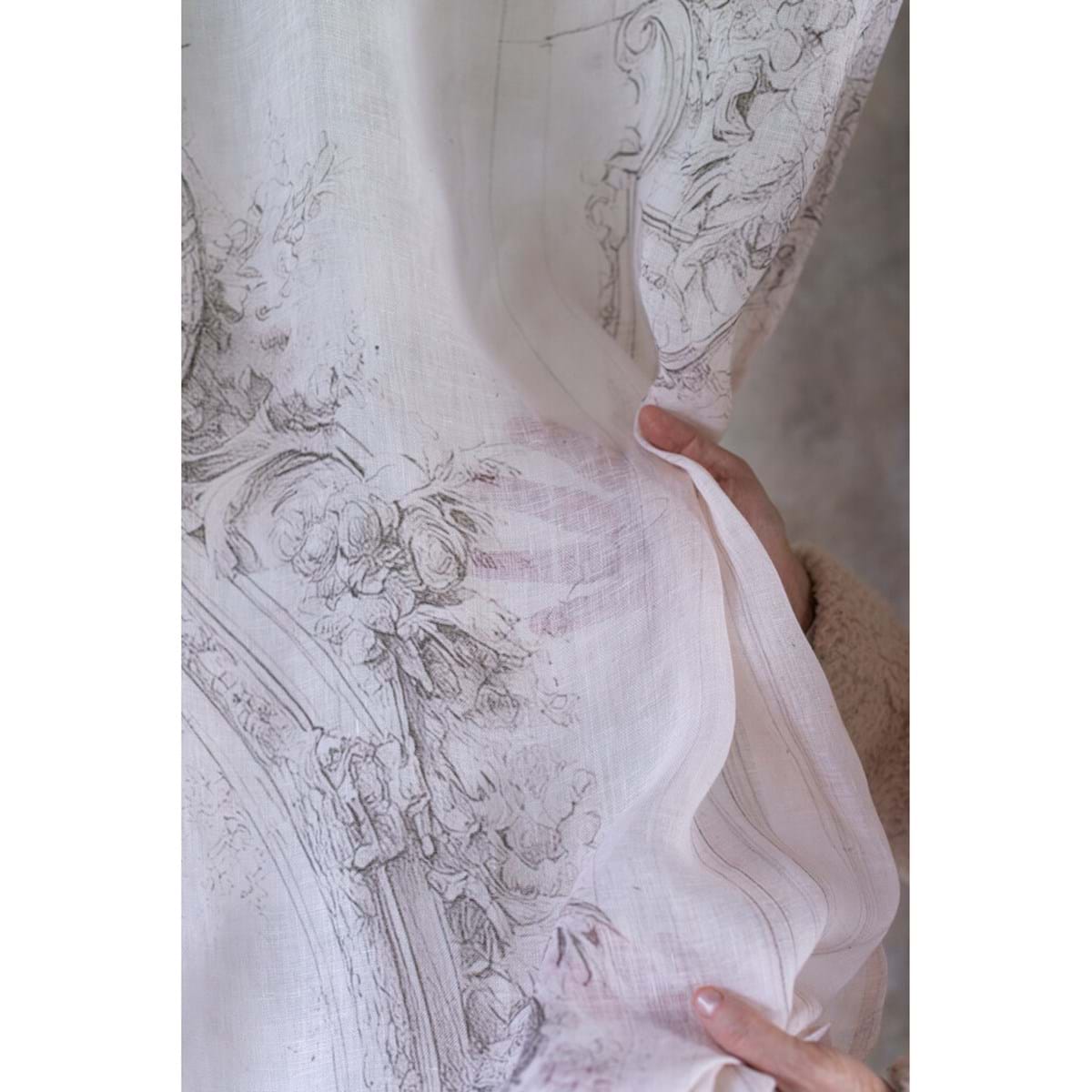 Ekskluzywna zasłona uszyta z lnu i bawełny. W eleganckim odcieniu z domieszką antycznej bieli, wzbogacona centralnym, szaro- beżowym nadrukiem, który wyróżnia się na tle naturalnej tkaniny. Wiązania dodają praktyczności i romantycznego akcentu, idealnie nadając elegancji i blasku klasycznym wnętrzom lub wnętrzom w stylu shabby chic. Zasłona idealnie filtruje światło słoneczne. Posiada elegancki, wyrafinowany charakter. Autentycznie odzwierciedla klimat dawnych czasów. Ozdobiona misternym haftem. Jest piękna i niepowtarzalna.