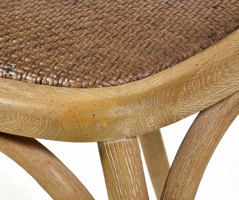 subtelnie postarzana i przecierana, tapicerka siedziska obita ratanem.