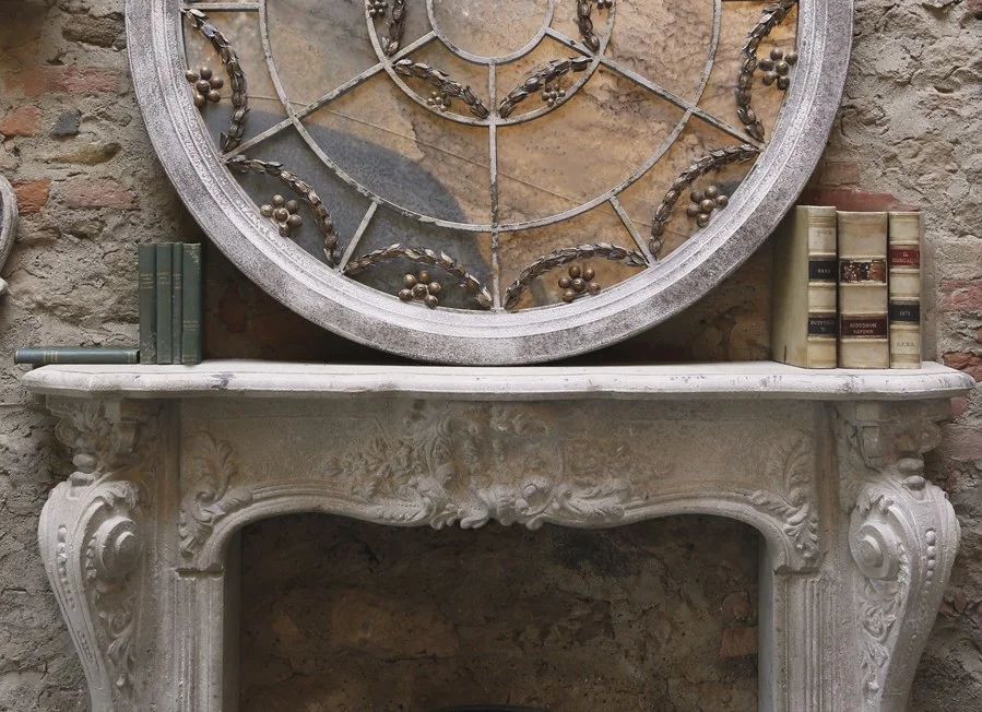 Elegancki portal kominkowy w klimacie francuskim. Pięknie grawerowany i postarzany w stylu shabby chic. Idealne uzupełnienie aranżacji do wnętrz, w których czujemy klimat minionej epoki. Sprawdzi, się również w nowoczesnych pomieszczeniach przełamując prostą formę mebli. Mieszanie stylów jest opcją dla podkreślenia charakteru salonu. Ozdobna obudowa kominka wykonana z niepalnej mieszanki żywicy i betonu, w pełni funkcjonalna. Kolor kominka jest bardzo jasny, jasnobeżowy.