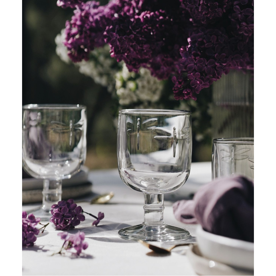 Kieliszek do wina z urokliwej kolekcji Libellules o charakterystycznym miękkim, zaokrąglonym kształcie, sygnowany wypukłym motywem delikatnej ważki. Wykonany z grubego prasowanego i odpornego szkła, które mieni się niczym woda pod promieniami letniego słońca. Doskonale leżący w dłoni, przyjemnie ciężki. Idealnie sprawdzi się do serwowania wina czerwonego, jak i białego oraz wody, soków i zimnych napojów